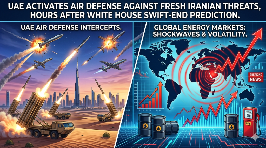 Just hours after the White House predicted a swift end to U.S. operations in Iran, the UAE activated its air defense systems to intercept a fresh wave of Iranian missile and drone threats, sending shock waves through global energy markets.